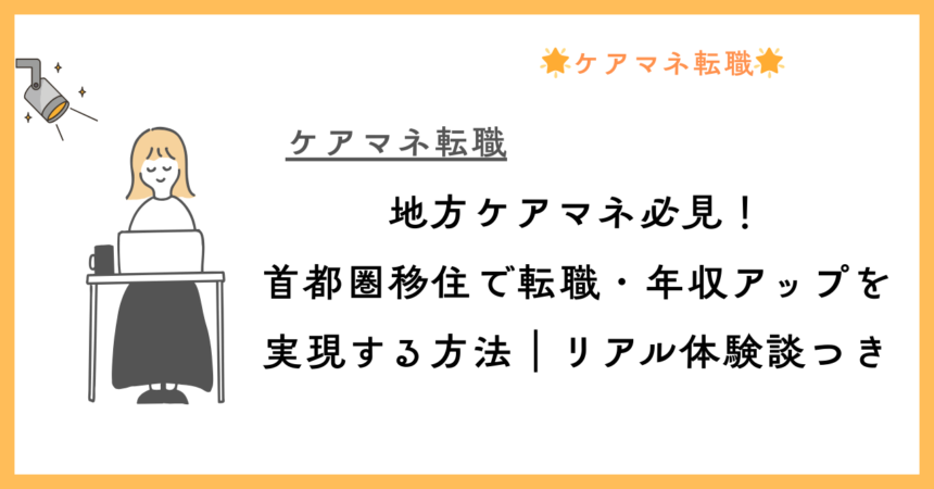 「地方でケアマネとして働いているけれど、収入がなかなか上がらない・キャリアアップの機会が少ない」と感じていませんか? 実は、首都圏へ移住して転職することで、年収アップ・キャリアの幅の広がり・ライフスタイル改善を実現しているケアマネは多くい... -